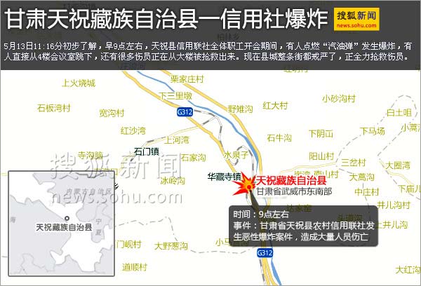 5月13日早晨,甘肅省天祝縣農(nóng)村信用聯(lián)社發(fā)生惡性爆炸案件,造成人員傷亡。