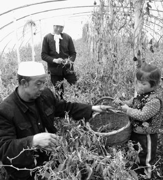 一個(gè)太陽(yáng)不錯(cuò)的冬日,張家川縣孟寺村的村民李占文帶著小孫子走進(jìn)了自家的塑料大棚,采摘最后一批辣椒。豐收的喜悅毫不掩飾地掛在他的臉上……