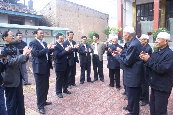 9月17日,張家川縣四大組織領(lǐng)導(dǎo)劉長(zhǎng)江、李升平、馬小龍、李棟一、馬正業(yè)、李肖鋒、馬國(guó)武等一行深入宣化岡拱北、南川道堂、張川鎮(zhèn)清真西大寺、張川鎮(zhèn)中街清真寺、張川鎮(zhèn)清真東大寺、張川鎮(zhèn)西橋頭清真寺等6個(gè)重點(diǎn)宗教活動(dòng)場(chǎng)所,進(jìn)行了穆斯林傳統(tǒng)節(jié)日“開(kāi)齋節(jié)”前的慰問(wèn)活動(dòng)。四大組織領(lǐng)導(dǎo)每到一處,首先代表縣委、縣人大、縣政府、縣政協(xié)向廣大宗教界和穆斯林群眾表示節(jié)日的慰問(wèn),并鼓勵(lì)宗教界人士和信教群眾繼續(xù)關(guān)心、支持縣委、縣政府的工作,為自治縣的民族和睦、宗教和順、社會(huì)和諧、經(jīng)濟(jì)發(fā)展和創(chuàng)建和諧宗教做出更大的貢獻(xiàn)。這是市委對(duì)張家川縣委領(lǐng)導(dǎo)班子調(diào)整后進(jìn)行的第一次規(guī)模較大的“爾德節(jié)”前慰問(wèn)活動(dòng),充分體現(xiàn)了縣四大組織對(duì)全縣穆斯林和宗教人士的親切關(guān)懷,進(jìn)一步密切了黨和政府同人民群眾的血肉關(guān)系。