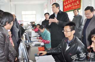 12月1日,天水市政府副市長(zhǎng)趙衛(wèi)東帶領(lǐng)市財(cái)政局、商務(wù)局、招商局、統(tǒng)計(jì)局、物價(jià)局、社保局等部門(mén)負(fù)責(zé)人,在張家川縣委書(shū)記劉長(zhǎng)江,縣委副書(shū)記、縣長(zhǎng)馬小龍,縣委常委、常務(wù)副縣長(zhǎng)李肖鋒,縣委常委、縣紀(jì)委書(shū)記麻小梅以及有關(guān)部門(mén)負(fù)責(zé)人的陪同下,先后深入張家川縣中石油分輸泵站、體育中心、行政廣場(chǎng)、政務(wù)服務(wù)大廳、社保服務(wù)大廳、會(huì)計(jì)核算中心、同仁建材市場(chǎng)、通達(dá)農(nóng)貿(mào)市場(chǎng)及汽配修理中心、劉堡鄉(xiāng)統(tǒng)計(jì)站、縣一中、縣民族商貿(mào)城調(diào)研,并在縣行政中心政府常務(wù)會(huì)議室召開(kāi)匯報(bào)會(huì)。
