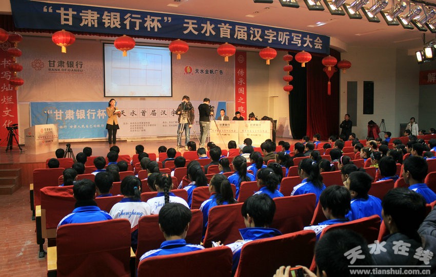 11月14日,由市委宣傳部、市語言文字工作委員會(huì)、市教育局和市文廣新局主辦,天水廣播電視臺(tái)承辦,甘肅銀行獨(dú)家冠名的天水市首屆漢字聽寫大會(huì)張家川專場比賽在張家川縣民族劇院舉行。天水市教育局副局長范具福,副縣長蘇華,縣文明辦、縣教體局負(fù)責(zé)人觀看比賽并為獲獎(jiǎng)選手頒獎(jiǎng),張家川鎮(zhèn)中學(xué)、阿陽中學(xué)、恭門鎮(zhèn)中學(xué)等全縣17所初級中學(xué)師生共300余人參觀看了當(dāng)天的比賽。