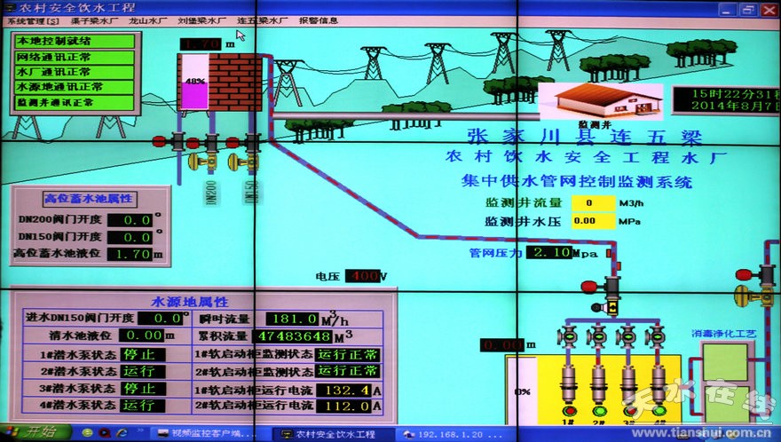 水平提高到位。提高服務(wù)水平,確保供水正常是農(nóng)村供水工作的宗旨和目標(biāo),張家川建成了集全縣信息自動(dòng)化監(jiān)控、水質(zhì)檢測(cè)、物資儲(chǔ)備、檔案管理等多功能的農(nóng)村供水綜合服務(wù)中心。信息自動(dòng)控制中心主要對(duì)全縣工程運(yùn)行實(shí)行24小時(shí)監(jiān)控,遠(yuǎn)程調(diào)度,排除故障,確保安全運(yùn)行。水質(zhì)檢測(cè)中心主要對(duì)全縣的水源水、凈化水、用戶水、末梢水進(jìn)行21項(xiàng)指標(biāo)的檢測(cè)化驗(yàn),確保老百姓吃上放心的自來(lái)水。物資儲(chǔ)備中心主要對(duì)全縣主干管道的管材和農(nóng)村所需配件進(jìn)行儲(chǔ)備,確保主干管道和農(nóng)戶發(fā)生故障時(shí)物資供應(yīng)到位,搶修及時(shí)。農(nóng)村供水綜合服務(wù)中心的建立,使全縣的供水管理工作提高到更高的水平。