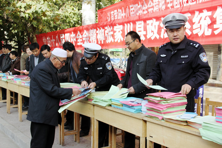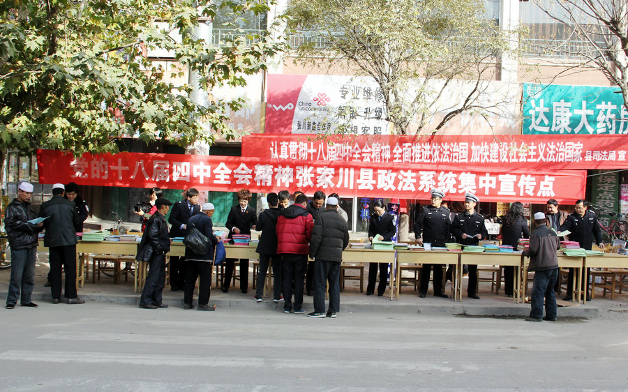11月12日,張家川回族自治縣在縣人民路什字,利用集市集中開展了以黨的“十八屆四中全會精神”為主要內(nèi)容的宣傳活動。此次活動由縣委常委、政法委書記何永東帶隊,縣政法系統(tǒng)各部門單位參加。
