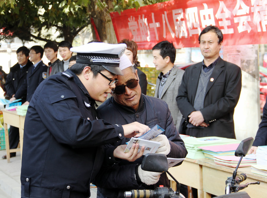 此次活動通過設(shè)立咨詢臺、懸掛橫幅、發(fā)放宣傳資料、播放音響資料等多種形式,向過往群眾大力宣傳黨的十八屆四中全會精神、憲法、民法、治安管理處罰法、道路交通安全法、行政強制法等與群眾生活密切相關(guān)的法律法規(guī),并現(xiàn)場解答群眾提出的疑難問題,教育引導(dǎo)群眾樹立正確的法制觀念,增強自我安全防范意識。