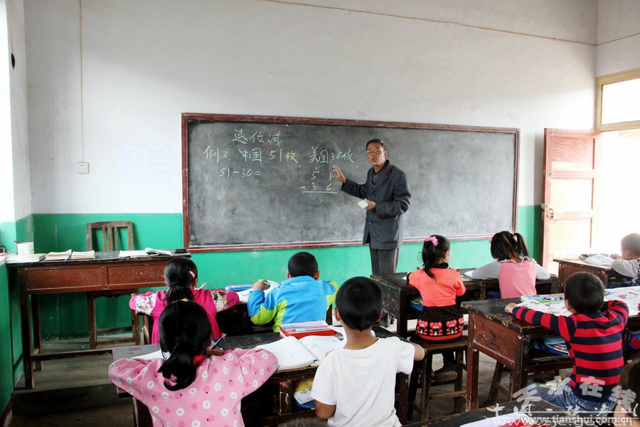 ▲ 在“復式班”三四年級講授《退位減》