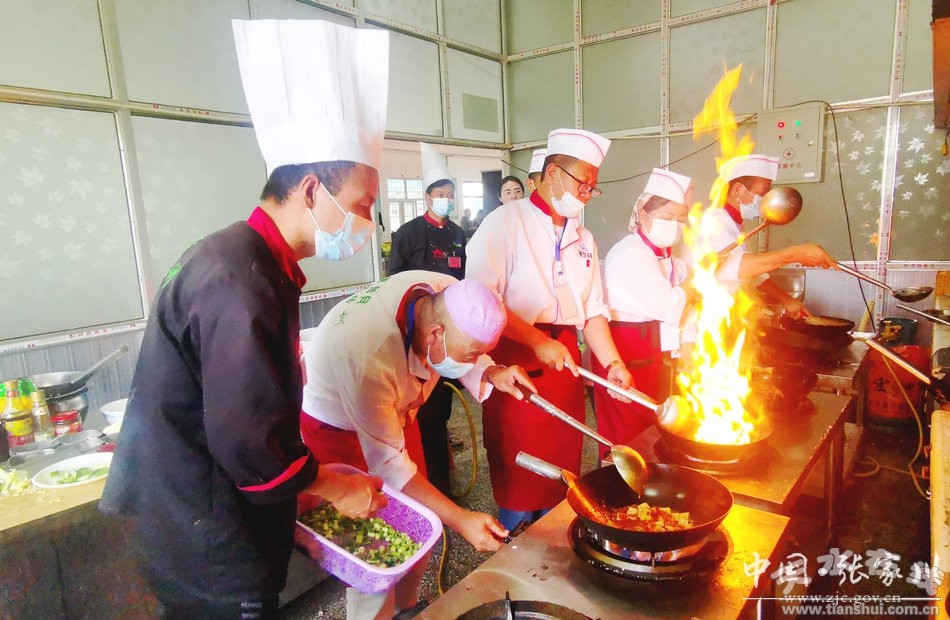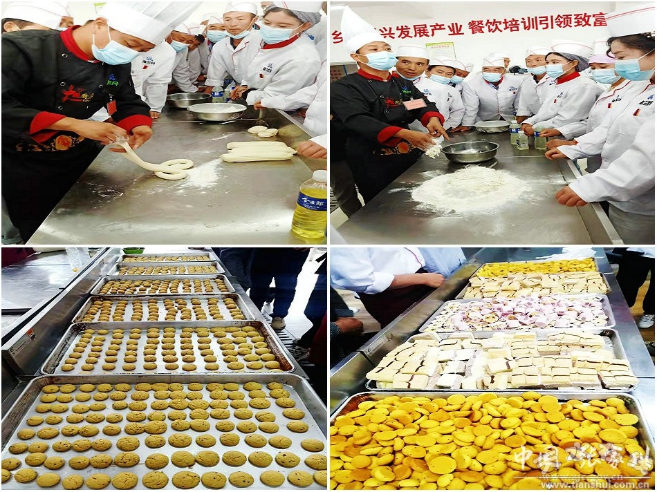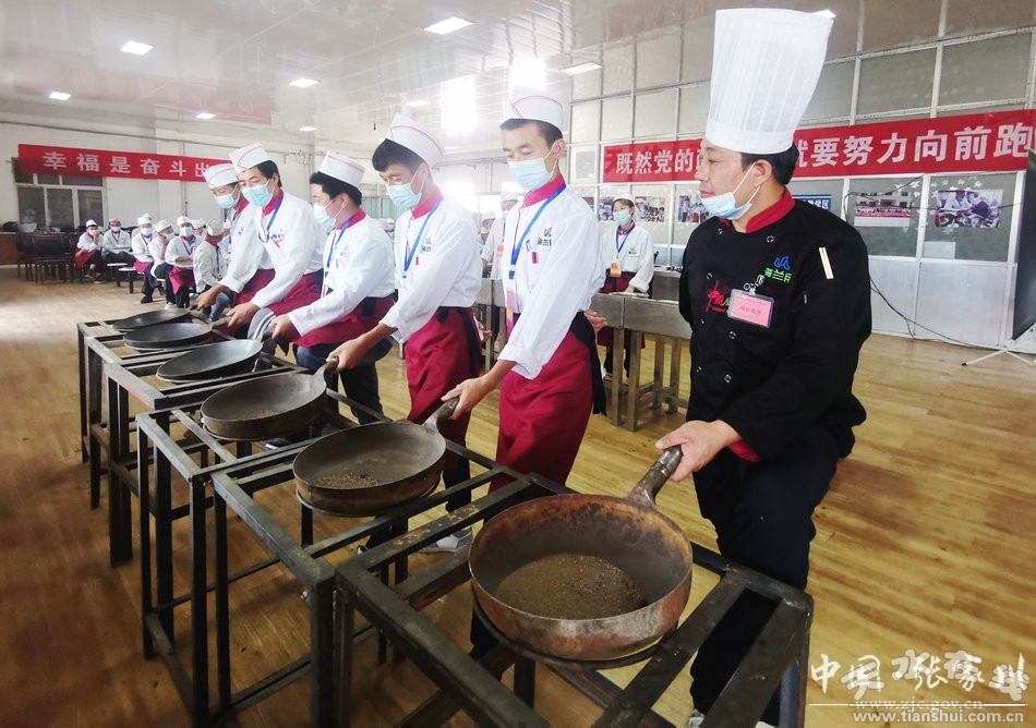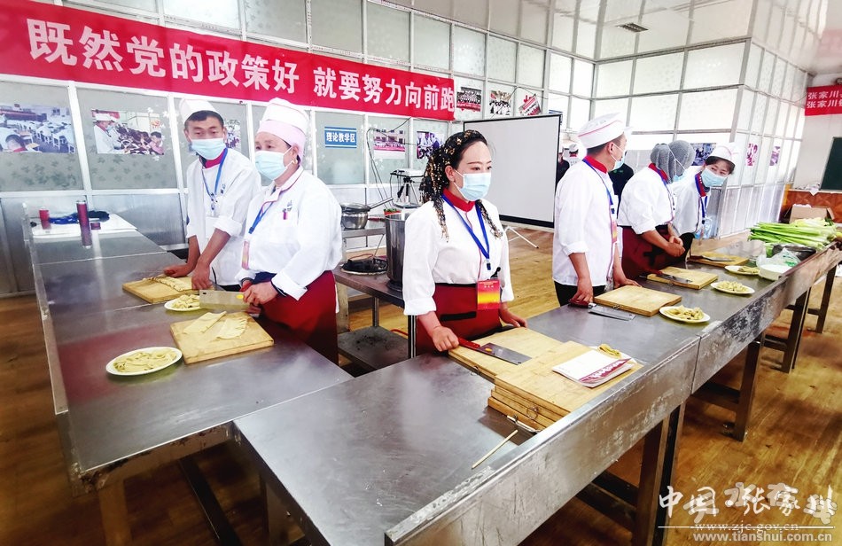 今年,張家川縣“中式烹調(diào)師”勞務(wù)品牌培訓(xùn)班在全縣15個(gè)鄉(xiāng)鎮(zhèn)開班,有創(chuàng)業(yè)意愿的脫貧戶和邊緣戶參加培訓(xùn),培訓(xùn)為期15天,培訓(xùn)內(nèi)容以中式烹飪?yōu)橹,培?xùn)菜品為手抓羊肉、紅燒丸子、孜然牛肉、鄉(xiāng)土豆片等22個(gè)家常菜,主要講授刀工、配菜、火候、調(diào)味、烹飪的操作過程,以及菜品的烹飪技巧,并配套講解營養(yǎng)搭配、食品安全、消防知識等相關(guān)從業(yè)基本知識!皬2019年開始,我們到張家川縣通過‘校校聯(lián)合’開展技能培訓(xùn),已培訓(xùn)376人。2020年開始,我們開展了14期的培訓(xùn),培訓(xùn)拉面學(xué)員1200余人。我們的培訓(xùn)是不間斷的,在培訓(xùn)過程中為了讓學(xué)員有更好地發(fā)展,我們聯(lián)系了勞務(wù)輸出,在北京、上海、蘭州等地幫助學(xué)員就業(yè)!焙Lm月培訓(xùn)學(xué)校培訓(xùn)部主任周顯軍告訴記者。