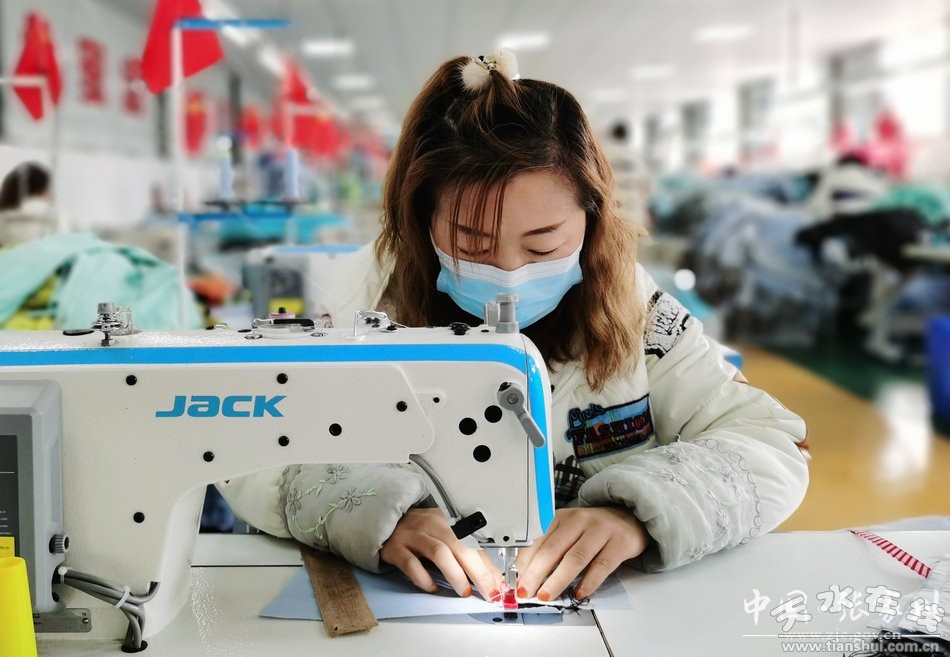 1月10日,記者在龍山鎮(zhèn)蘆塬村卓越服裝有限公司就業(yè)幫扶車間里看到,一批剛生產(chǎn)好的休閑服正在打包,一箱箱成品整齊的堆碼在廠房一側(cè)準(zhǔn)備發(fā)出。而在生產(chǎn)線上,佩戴口罩的女工們坐在縫紉機前“飛針走線”,線輪快速轉(zhuǎn)動,機針上下跳動,裁剪、縫制、熨燙、打包等各項工序忙而有序。據(jù)悉,這些工人大多是當(dāng)?shù)丶彝D女,由于日常生活中需要照顧家里的老人小孩,無法到離家遠(yuǎn)的地方打工,現(xiàn)在村里建成了這個服裝加工廠,很好地解決了她們之前既想照顧家庭又想增加收入的矛盾。