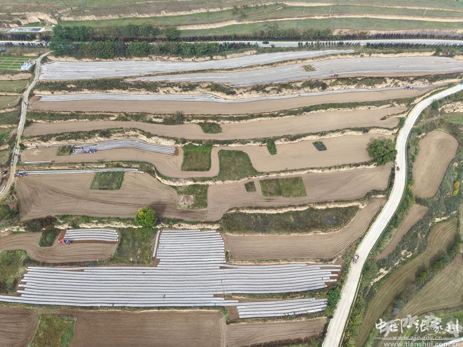 張家川縣梁山鎮(zhèn)萬(wàn)畝高山小麥良種繁育基地里,五臺(tái)機(jī)械齊上陣,種糧戶們熱情高漲,一層層梯田上土壤松軟,隨著覆膜機(jī)來(lái)回穿梭,一壟壟地膜若游龍一般躍動(dòng)在整個(gè)山谷間。