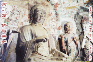 窟形: 仿木構(gòu)建筑崖閣式洞窟,前有窟廊,后鑿一窟二龕,為“三式佛”龕中窟平面呈橢圓形,穹窿頂。
