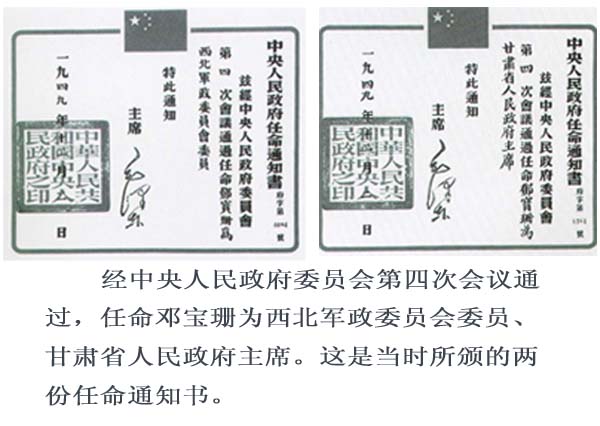 新中國成立后,鄧寶珊長期主持甘肅省人民政府工作,在他主政期間,認(rèn)真貫徹執(zhí)行黨中央、國務(wù)院的各項(xiàng)方針政策,關(guān)心各項(xiàng)社會事業(yè)的發(fā)展,關(guān)心人民生活;重視民族團(tuán)結(jié)和愛國統(tǒng)一戰(zhàn)線的發(fā)展,并做出了貢獻(xiàn)。他作風(fēng)民主,顧全大局,態(tài)度謙和,平易近人,善于團(tuán)結(jié)和聯(lián)系各方面人士,在干部和群眾中留下了深刻的印象,群眾稱他為“我們的好省長”。