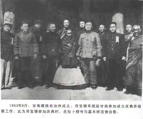 鄧寶珊對少數(shù)民族文化遺產(chǎn)也非常的關(guān)心。1933年,甘南藏區(qū)的西倉、雙岔兩步由于草山和林地問題矛盾激化,兩地寺院均毀于械斗戰(zhàn)火。次年,鄧寶珊作為查辦大員,前往處理事件,堅拒饋贈,明斷是非,并以巨款重罰肇事雙方,罰款大部分用于修復寺院,從而保護了藏民族歷史文化遺產(chǎn)。鄧任省長后,他熟悉省情,注意團結(jié)民族宗教界上層人士,時時處處講大局,在化解矛盾、穩(wěn)定社會方面卓有貢獻。