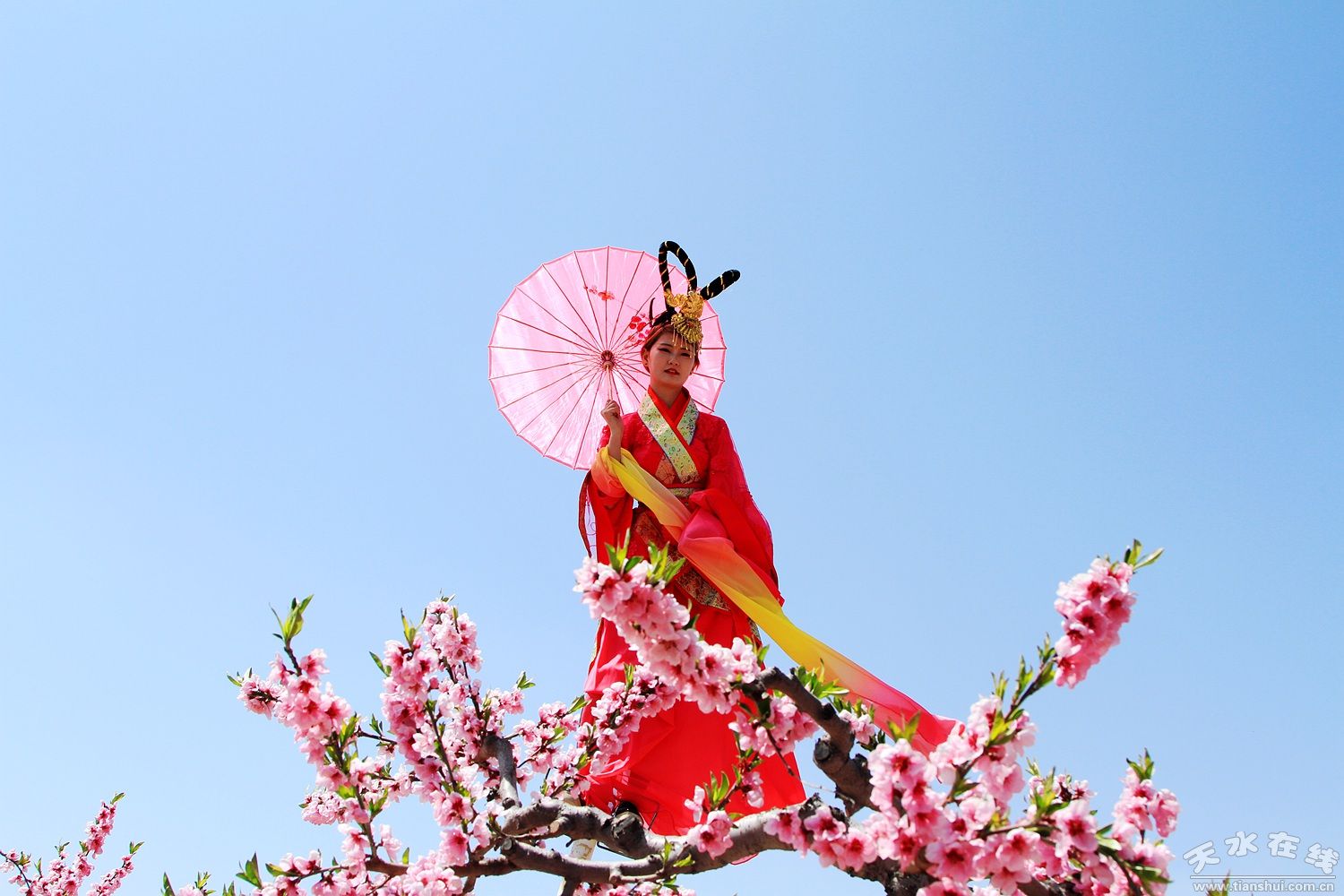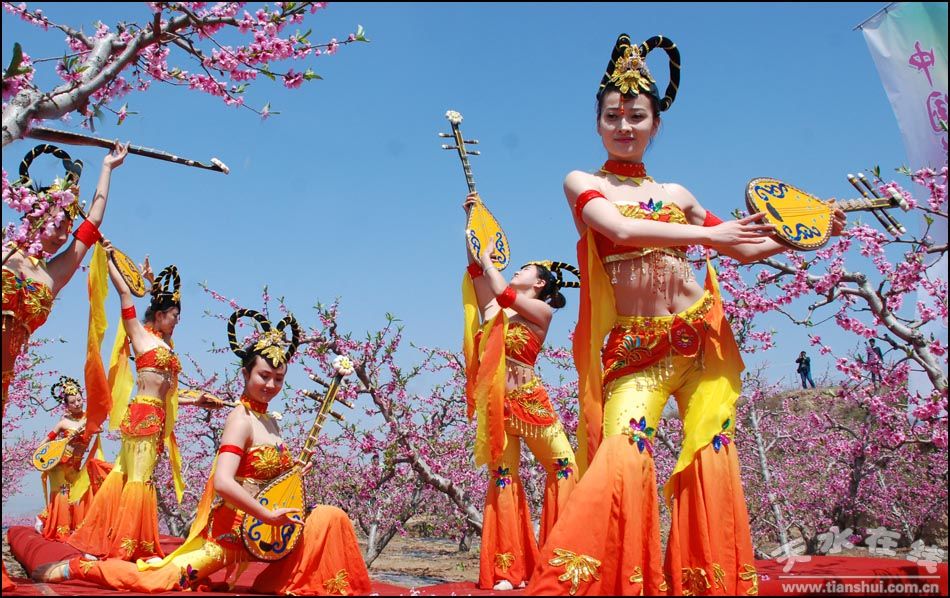 春天的風(fēng)吹醒了山川大地,進(jìn)入四月,在天河熱土上,沿著藉水河、沿著渭水河、沿著羅峪河、沿著葫蘆河、沿著牛頭河、沿著清水河……杏花、桃花、櫻桃花、蘋果花、油菜花、梨花、連翹、郁金香,像一條條“五彩絲帶”一般縱橫交錯(cuò)在青山綠水間,把迷人的芬芳獻(xiàn)給純純的藍(lán)天,把醉人的花朵回饋給賜予她生命的土地。 四月的天水,花開成海,請(qǐng)你到天水來看花海。