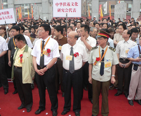 天水在線2005年7月3日報(bào)道 昨夜火樹銀花,煙火鬧市,今日龍旗飄揚(yáng),萬人空巷,鼓聲陣陣,第十七屆乙酉年公祭伏羲大典今天隆重舉行。全國人大委員會(huì)副委員長許嘉璐、中華伏羲文化研究會(huì)會(huì)長賈斌等以及來自海內(nèi)外的華人華僑、港澳臺(tái)同胞、天水各界群眾等上萬“龍的傳人”和一些國際友人參加了祭祀活動(dòng)。公祭大典由政協(xié)甘肅省委員會(huì)主席仲兆隆主持。