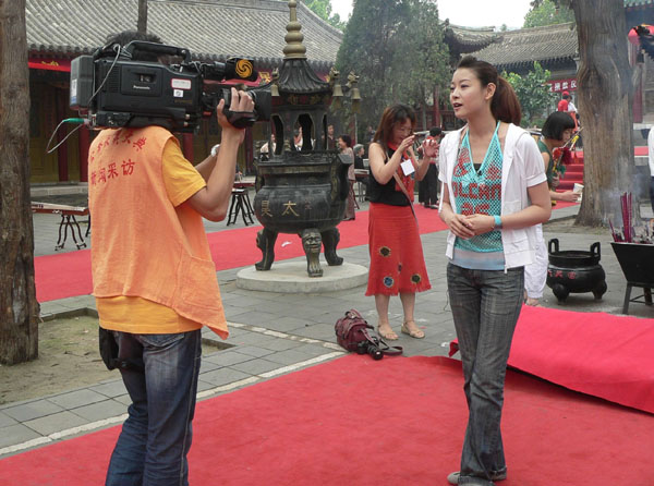 ▲圖為香港鳳凰衛(wèi)視記者采訪公祭伏羲大典活動(dòng) 圖片拍攝:天水在線
