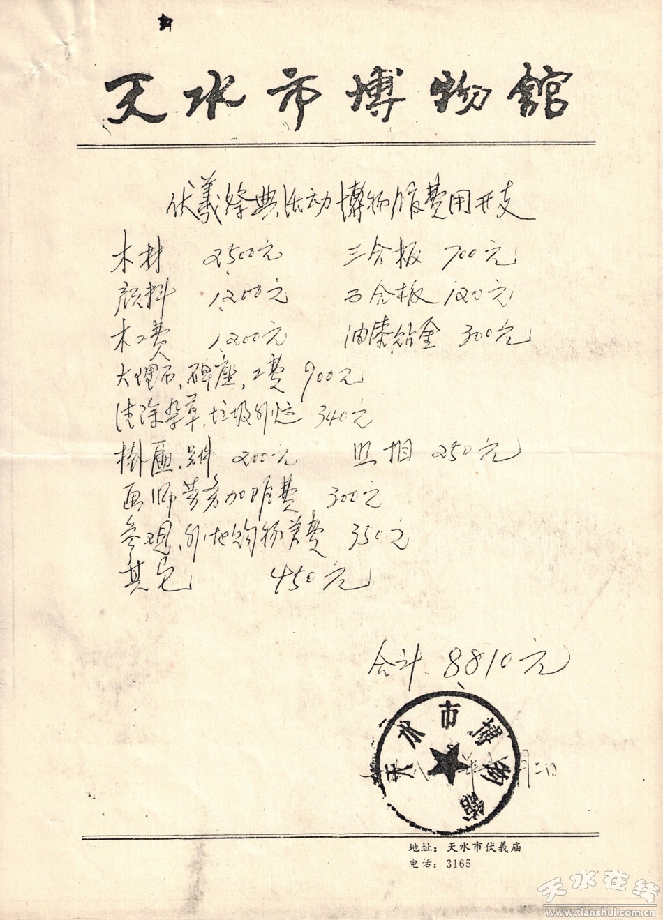 由于首次搞大型公祭活動(dòng),缺乏經(jīng)驗(yàn)和足夠的費(fèi)用,市旅游局、市文化局、市博物館等費(fèi)用加起來(lái)不到十萬(wàn)元(維修伏羲廟的78萬(wàn)元是向省政府申報(bào)落實(shí)的)。因此,在大殿維修、彩繪、泥雕修整、典慶音樂(lè)、相關(guān)服飾、文物修䦅、場(chǎng)景裝點(diǎn)、典禮布景、大典禮儀等各個(gè)方面都十分簡(jiǎn)樸,因陋就簡(jiǎn),少花錢(qián)多辦事,厲行節(jié)約。一場(chǎng)首次舉辦的公祭活動(dòng),在祥和、肅穆、歡快、熱烈、平安、樸實(shí)無(wú)華的氣氛中圓滿結(jié)束。