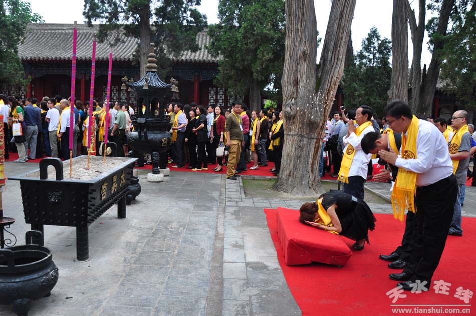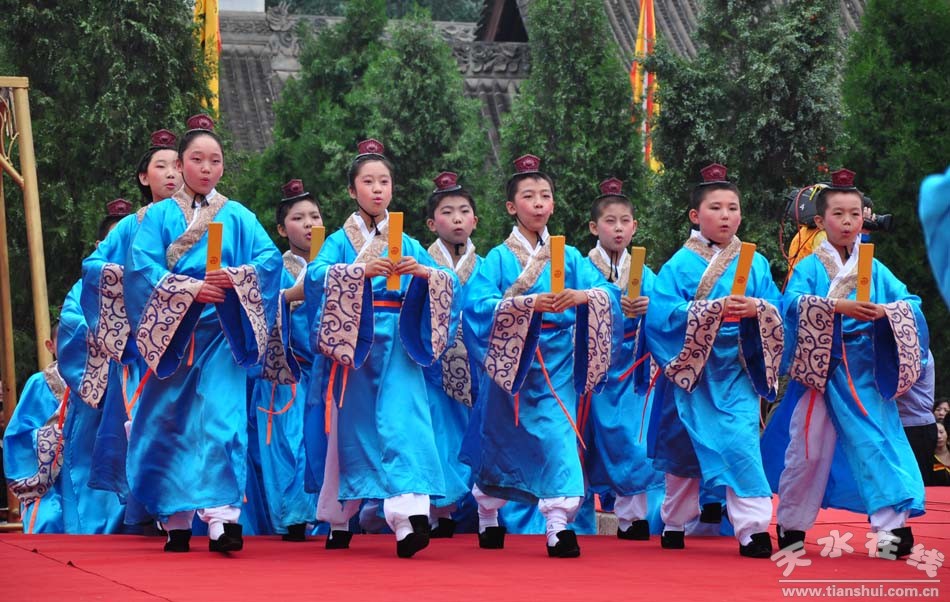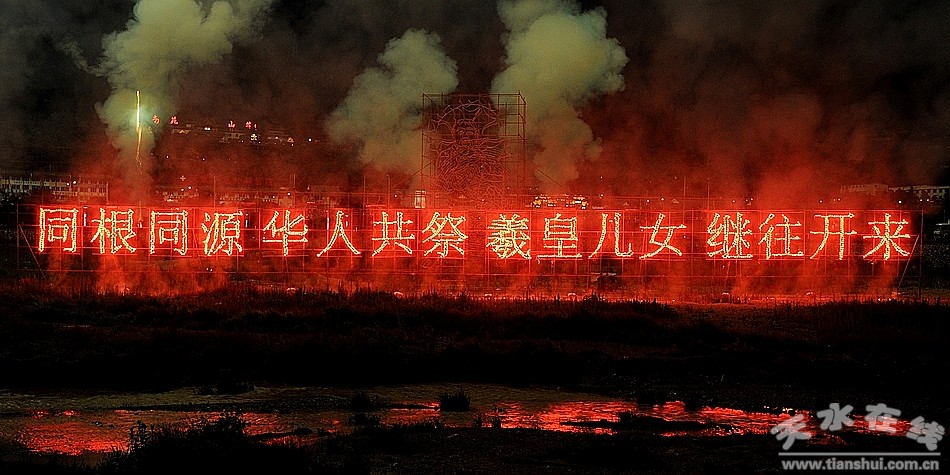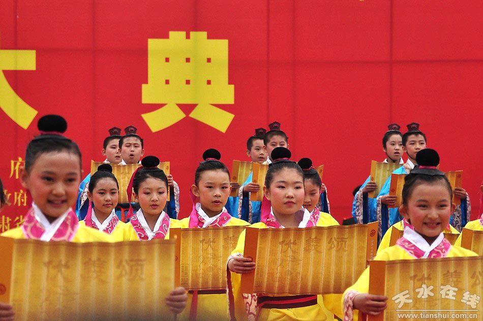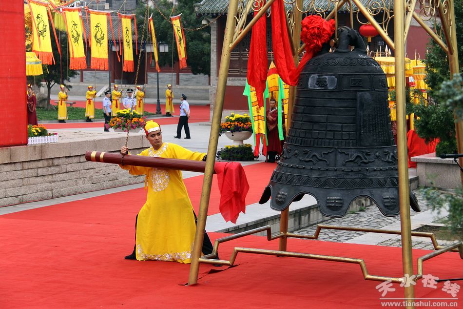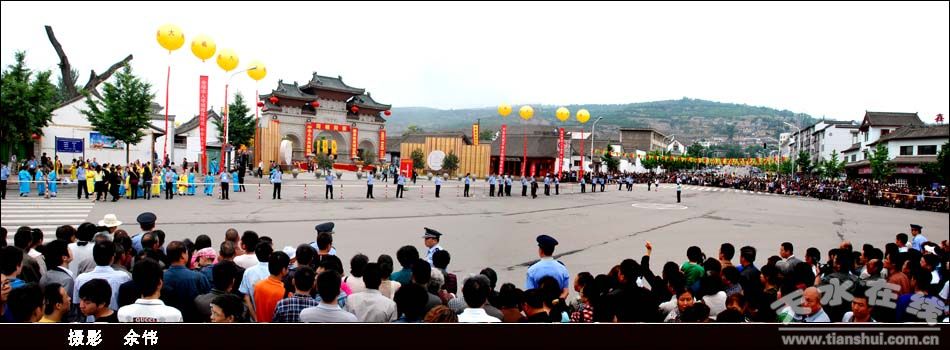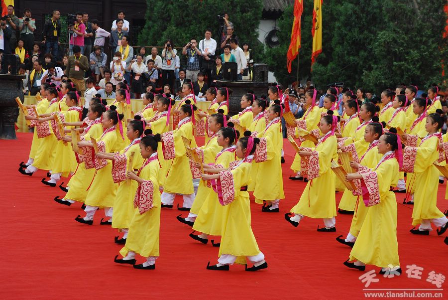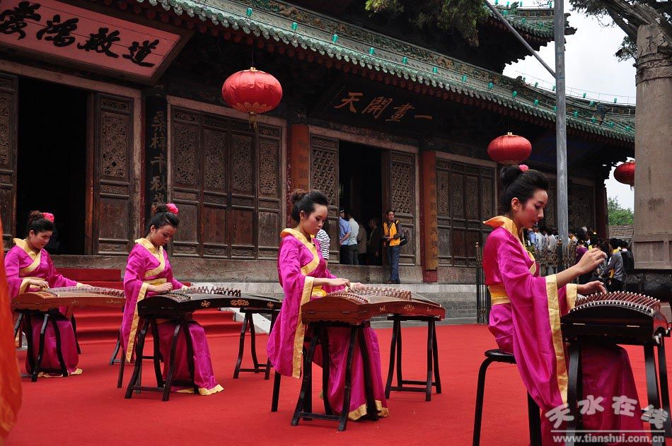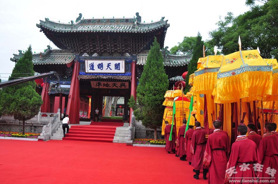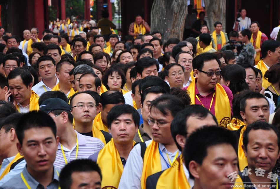 2011年6月22日上午,天水市伏羲祭祀廣場(chǎng)古樂(lè)悠悠,氣勢(shì)恢宏;伏羲廟內(nèi)古柏掩映,莊嚴(yán)肅穆。由甘肅省人民政府主辦,天水市人民政府、甘肅省文化廳承辦的2011(辛卯)年甘肅省公祭中華人文始祖太昊伏羲大典在這里隆重舉行。海內(nèi)外中華兒女近萬(wàn)人匯聚一起,傳承中華文明,公祭人文始祖,表達(dá)對(duì)太昊伏羲的虔誠(chéng)和敬仰。
