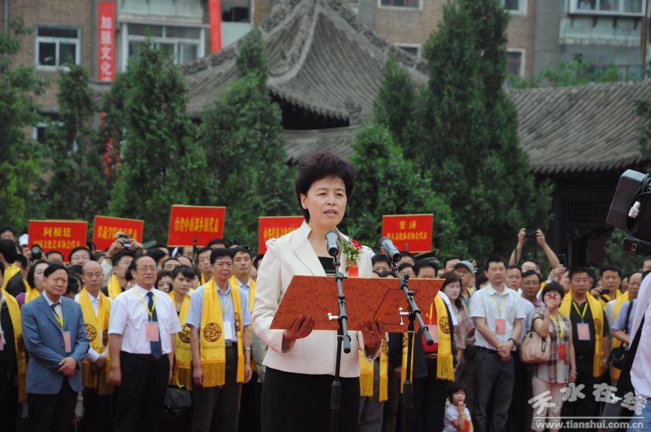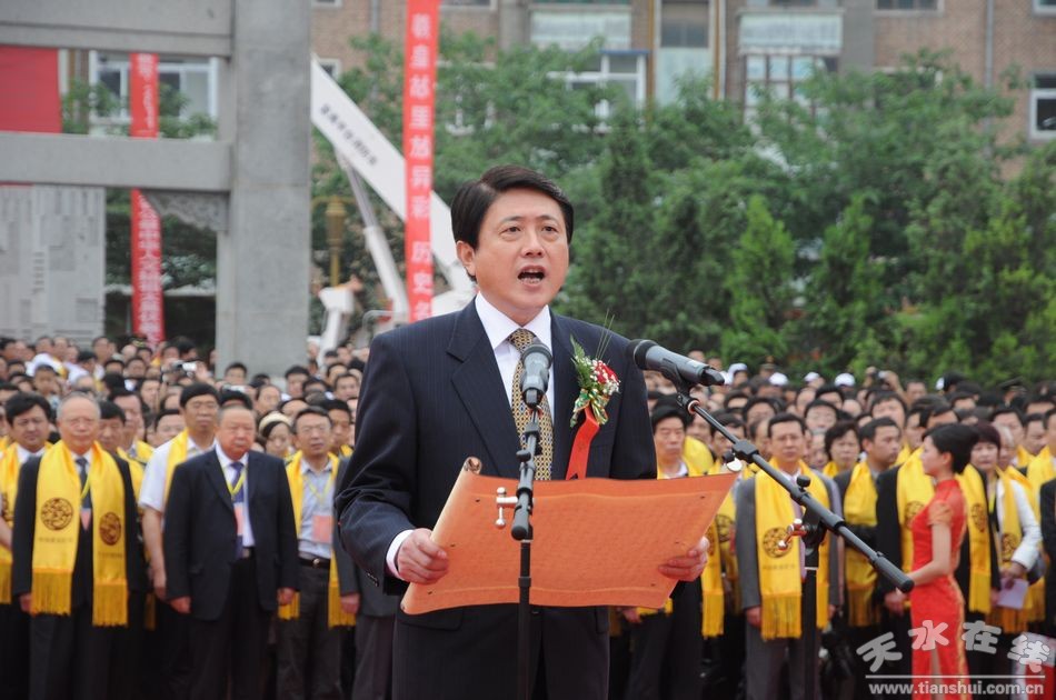 ▲省委書(shū)記、省人大常委會(huì)主任陸浩宣布2011(辛卯)年甘肅省公祭中華人文始祖太昊伏羲大典開(kāi)始
